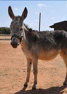 Dusty was found abandoned in Qalqilya in October 2013 when he was only around 4 weeks old, probably because his owner felt that he was hindering the mother donkey from working. When brought to the sanctuary he spent the first few days "calling" for his mother but soon settled down under our care.