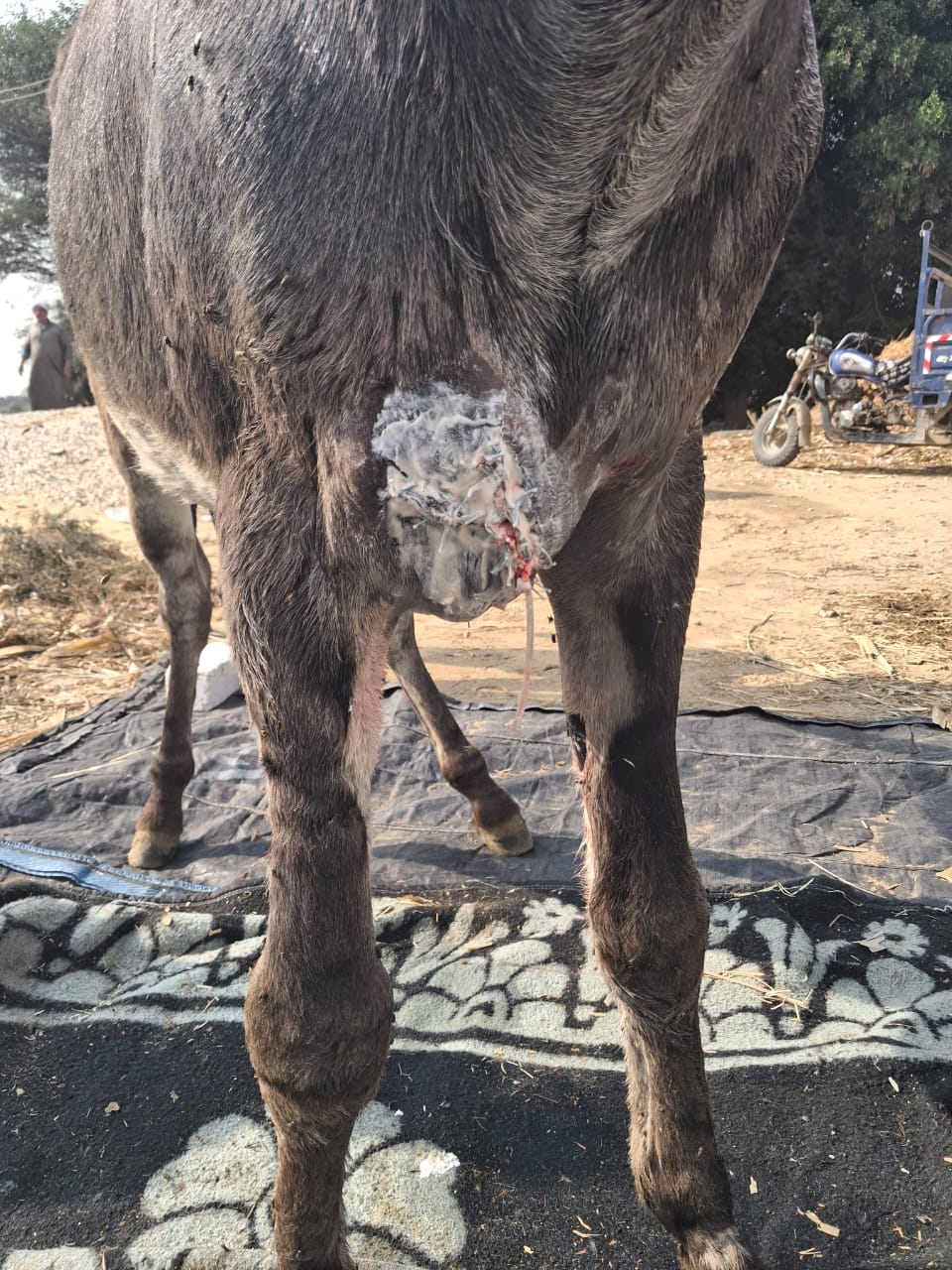 The donkey’s injury was severe – so Dr Shaaban soon set to work to clean and stitch the wound.