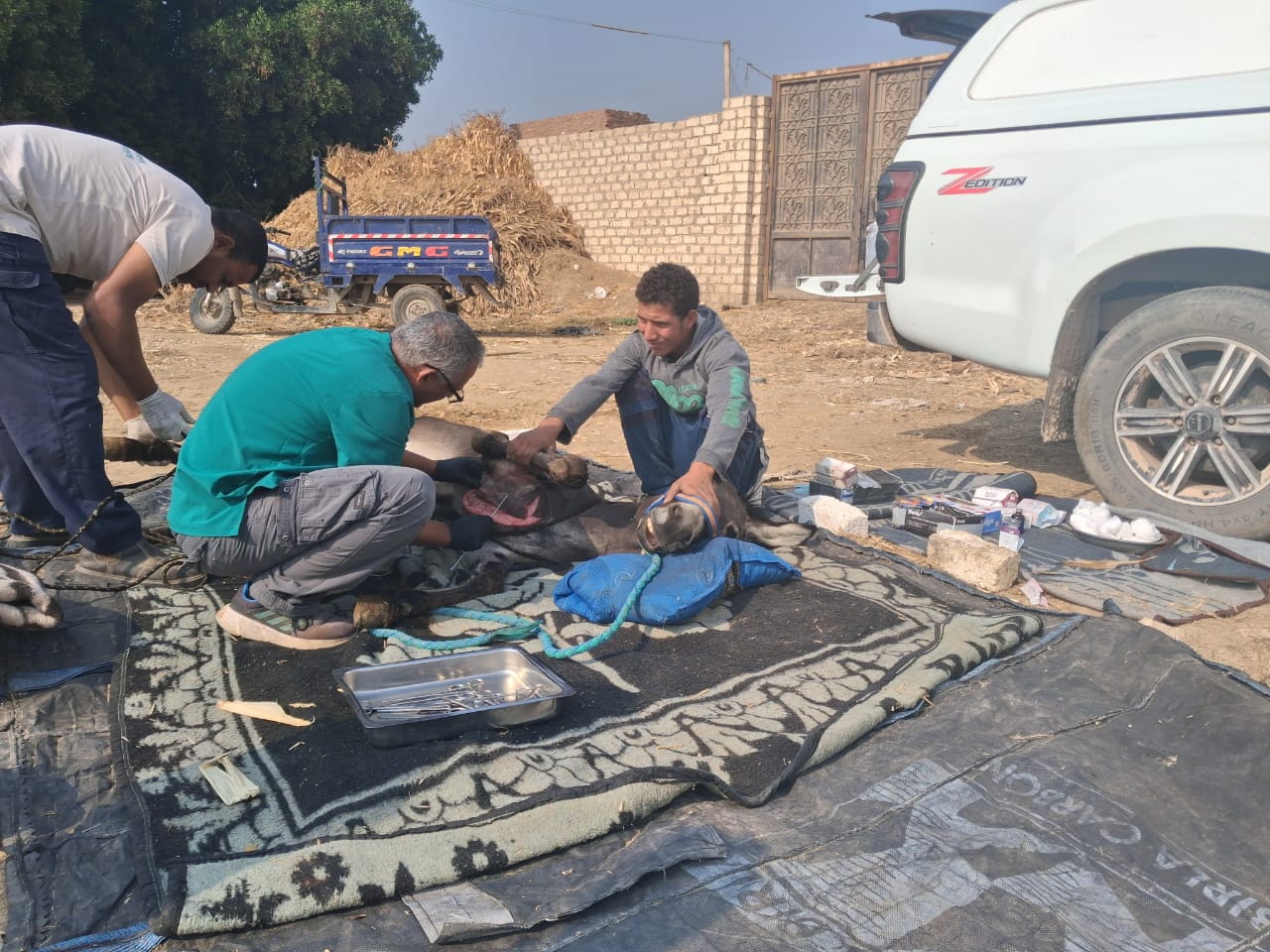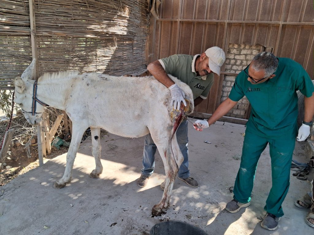 Dr Shaaban, assisted by Moharram, treat the donkey’s painful abscess.
