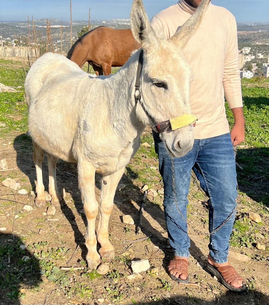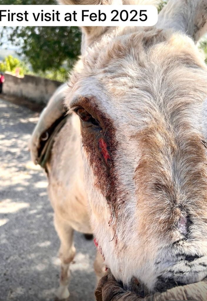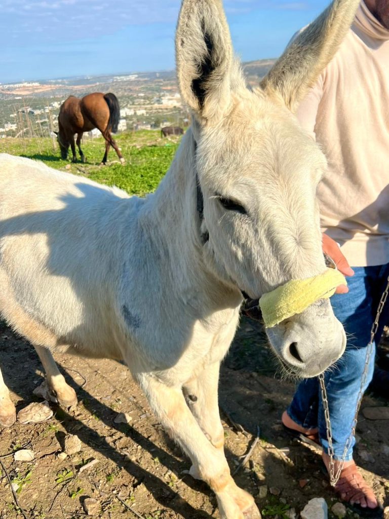 In another village near Salfit, the team met a gentle donkey who had been struggling this time last year. She had been underweight, with sore, irritated skin beneath constantly watering eyes. She had never received even basic preventive care, including deworming.