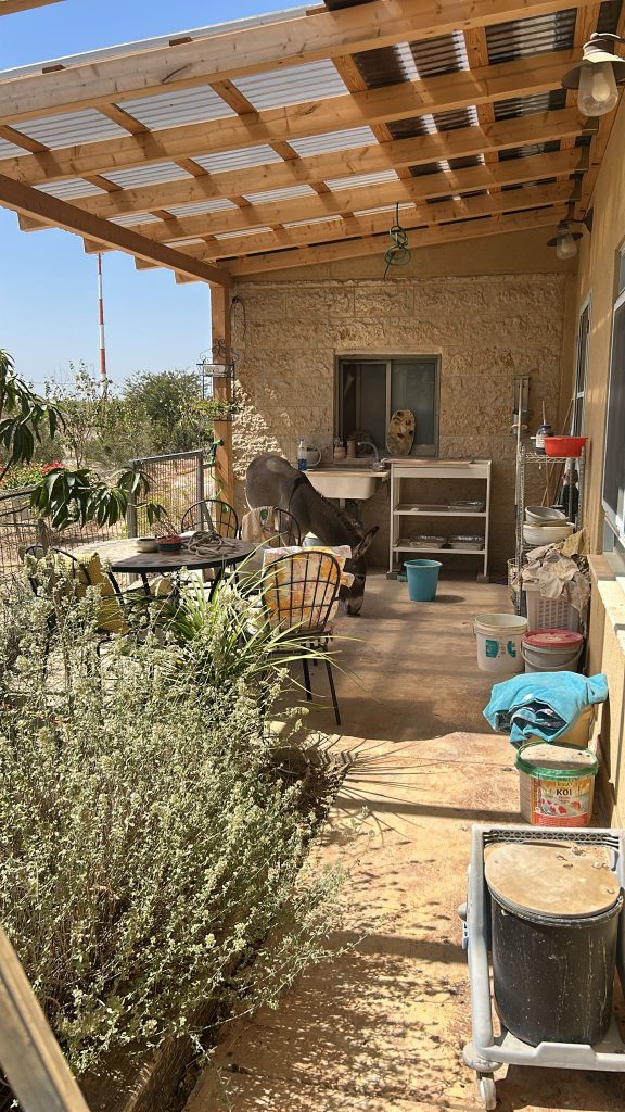 Just two days later, on 28th September, a woman in a northern Negev village contacted us about an abandoned donkey near her home. We asked her to offer temporary shelter until our team could arrive – and that same evening, the young donkey was transported safely to our sanctuary.