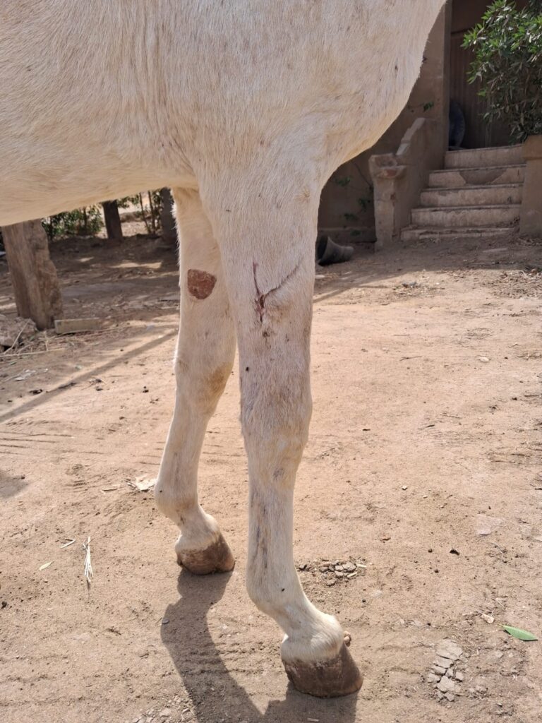 After a serious cart accident, the donkey fell and was initially unable to stand. He was suffering from severe hind limb lameness and a large swelling around his hip. As if that wasn’t enough, he had also been in a fight with another donkey, leaving him with a deep, lacerated wound on his foreleg.