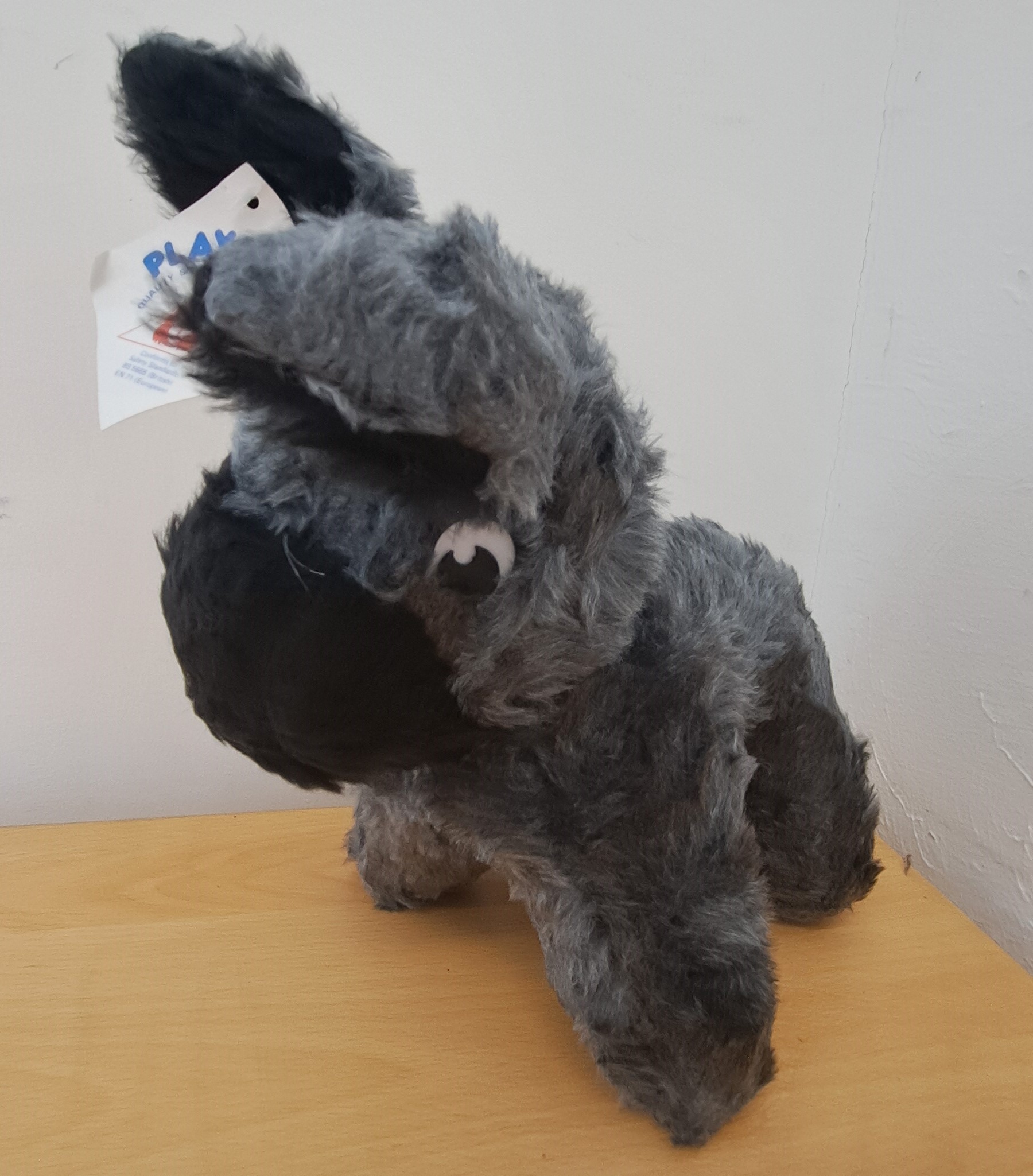 Grey soft donkey toy.  Approx 28cm tall.   Remove all tags before giving to a child and ensure children are supervised when playing with toys.