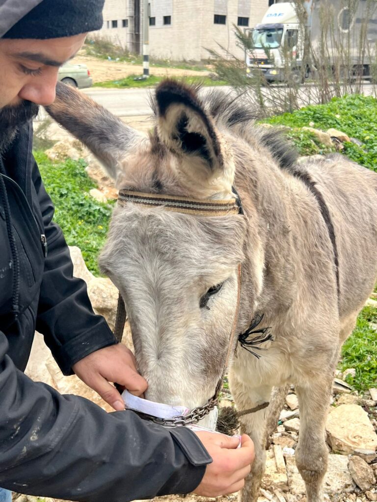 Dr Rakan and Nour also helped to provide veterinary care and hoof trimming to a group of builder donkeys. The chain guards Dr Rakan fits are made by our lovely supporters in the UK, along with others made locally by older ladies from a refugee camp in Nablus.